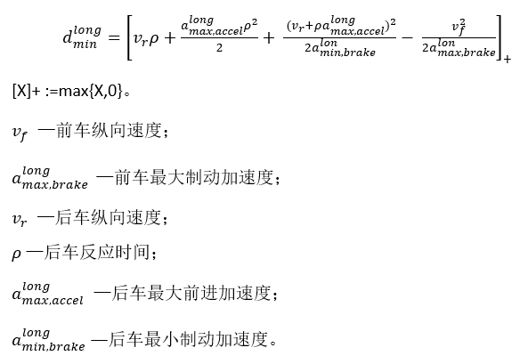 根据速度-位移公式,上述恶劣跟车场景下的最小纵向安全距离应定义为: