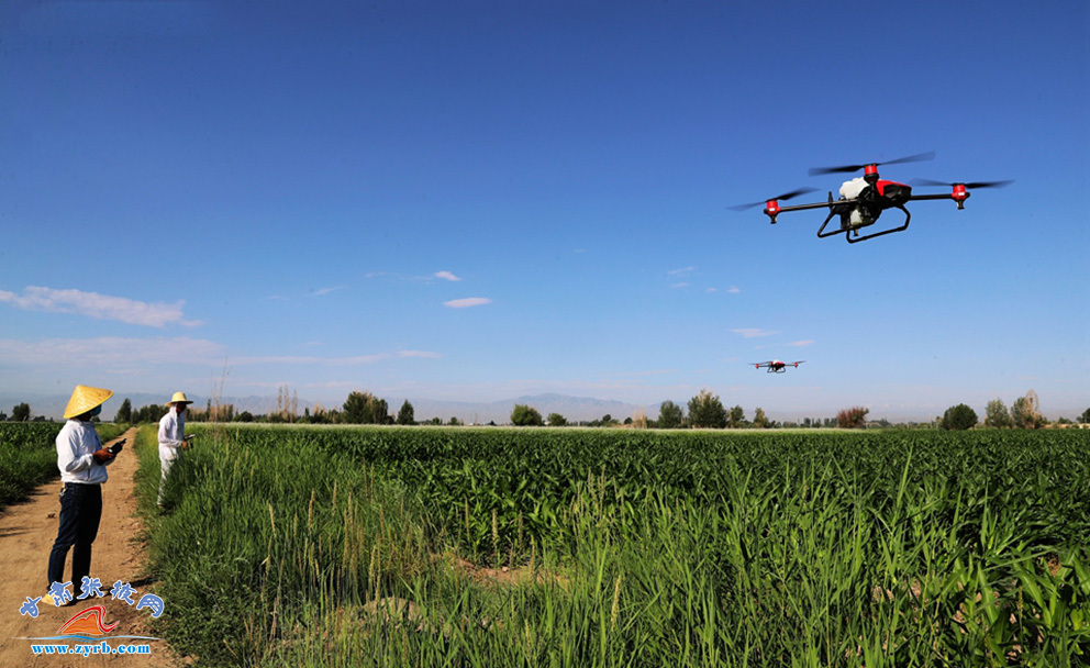 6月20日,甘肃省张掖市甘州区乌江镇敬依村大田玉米和制种萝卜地里,甘肃蒲沐农业科技发展有限公司技术人员操作植保无人机开展喷洒农药作业,防治病虫害发生。眼下正值玉米等农作物病虫害防治的关键时期,该村开展病虫害专业化统防统治,利用专业公司植保无人机对2300亩玉米、110亩制种萝卜进行飞喷施药。植保无人机具有喷洒均匀、雾化效果好、不受作物长势和地形限制等优势,有效提高了工作效率和抗病能力,降低了投入成本,为秋季丰收奠定了基础,助力农民增收。