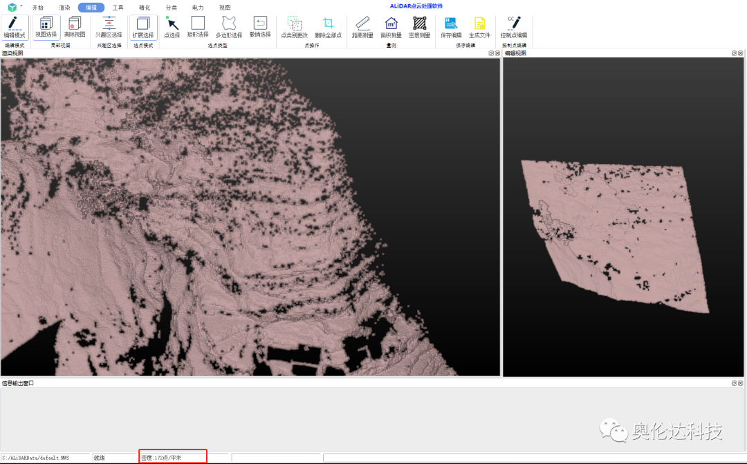 山区地形图测绘,滤除地面植被后,点云密度也可达到172点/平方米。