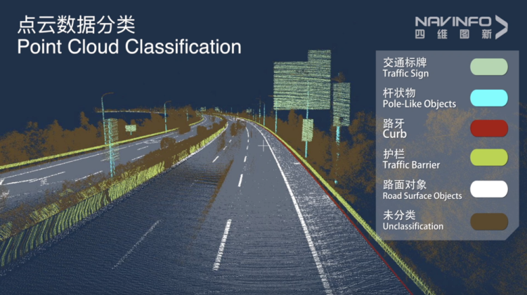 在 AI 算法开发过程中,四维图新使用 TensorFlow 训练图像(对象检测、分割)以及点云识别算法,对点云自动进行要素分类。