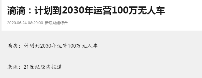 而同样的来自《21世纪经济报道》的消息,滴滴自动驾驶公司首席运营官孟醒近日在出席某项会议上提到,滴滴目前正在开发自动驾驶技术,计划到2030年通过其平台运营超过100万辆无人车。