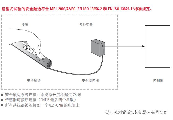 此外,常规的安全触边便是是NO输出,如果接线断开或者触边失效,是没有办法监测的。安全触边属于接触式安全设备,也是AGV最后一道防线,为了提高安全性,要加个专用的安全监控器,以提高安全性。一般安全触边是和配套的安全监控器一起过的安全认证。符合要求的品牌有日本欧姆龙、瑞士保策等。