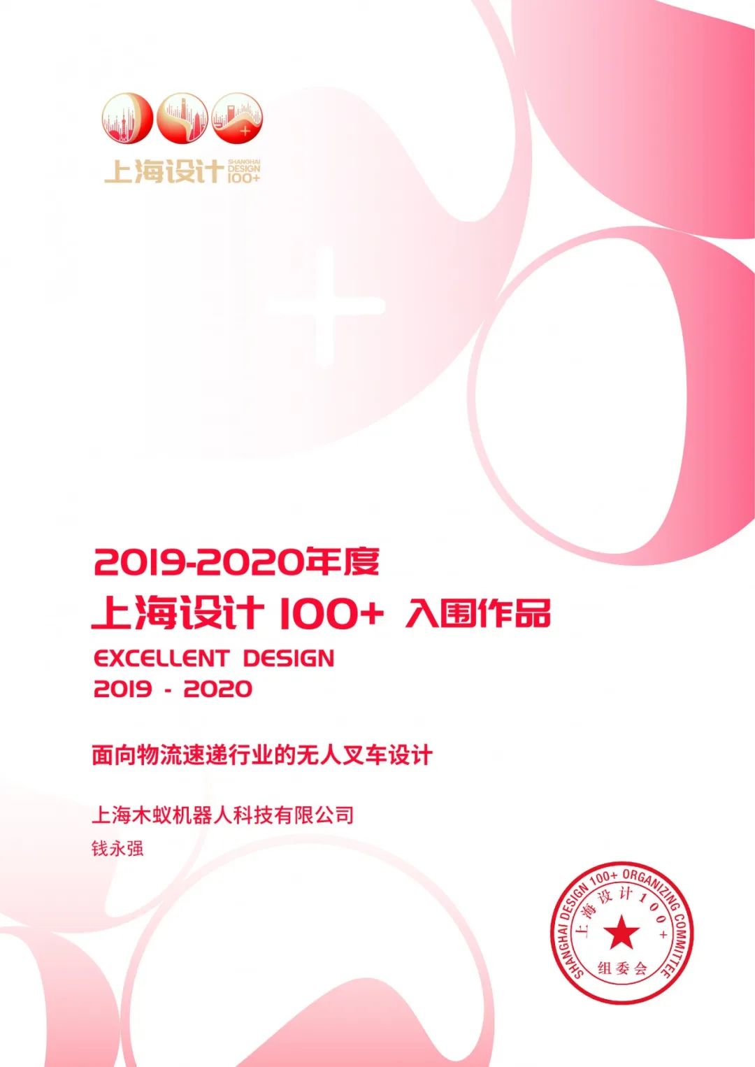 上海木蚁机器人科技有限公司提报的《面向物流速递行业的无人叉车设计》获得2019-2020年度“上海设计100+入围作品”