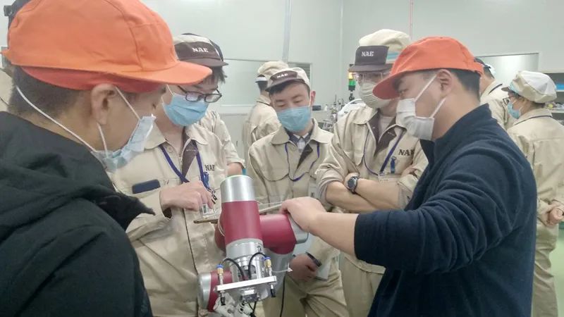 某电子厂商作为行业生产规模全球名列前茅企业,在面对瞬息万变的市场需求时,在生产线部署节卡小助协作机器人。