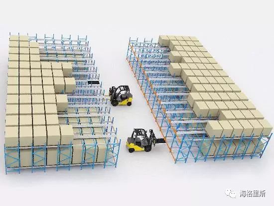 1、普通叉车+穿梭车。与堆垛机系统相比,这种系统的自动化程度虽不高,但成本低得多;另外,在同等仓储面积下可以容纳的货位更多。因为堆垛机系统在托盘货物载重1吨的情况下一般只能做到双伸位、最多三伸位存储,而穿梭车系统则可以做到十几个甚至几十个伸位,因此存储密度更高。