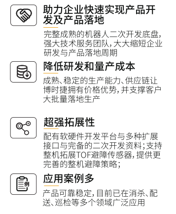 同时,博众机器人也重视合作共赢,持续推出智能机器人的“联合开发”策略,更快更专业的做出市场真正需要的智能机器人设备,为人类智慧生活贡献力量。