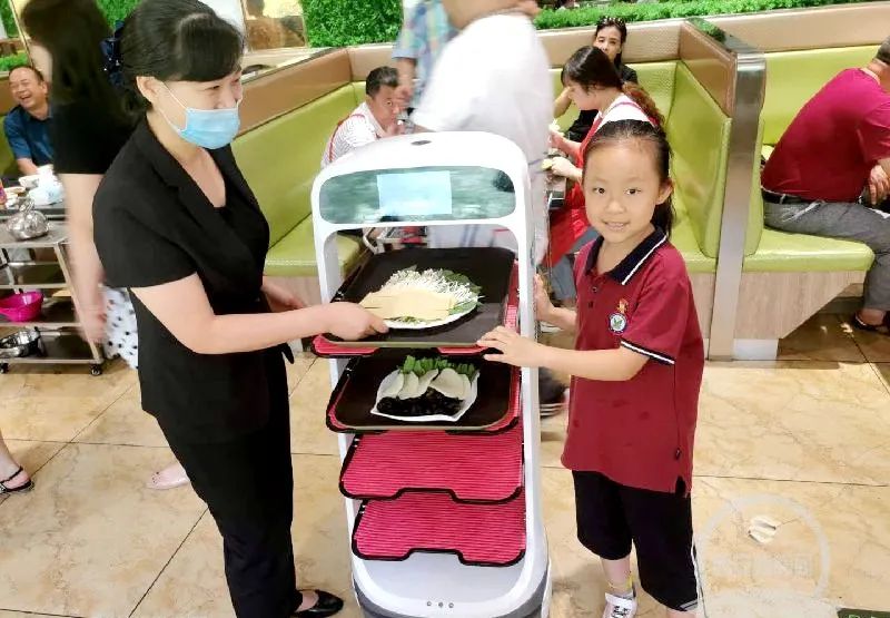 常来锦翔炝锅城解馋的赵先生,近日带着家人又来到这里,刚落座就被店里的机器人吸引了。“咦,怎么是机器人来传菜,新鲜!”看到店里的“新员工”,赵先生的小孙女高兴地上去摸摸机器人的头,嘴里不停地说:“你好”。
