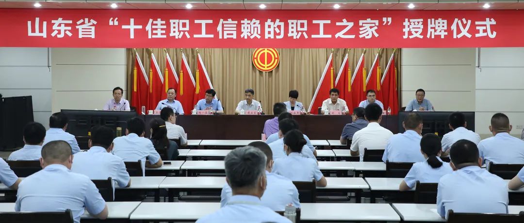 7月7日,山东省总工会在临工集团举行仪式,为临工集团获评“十佳职工信赖的职工之家”送奖上门并授牌。省总工会党组成员、经费审查委员会主任蒋石宝,临沂市人大常委会副主任、市总工会主席刘淑秀,临沂市政府党组成员、经济技术开发区党工委书记、管委会主任陈一兵,临工集团董事长王志中出席仪式。