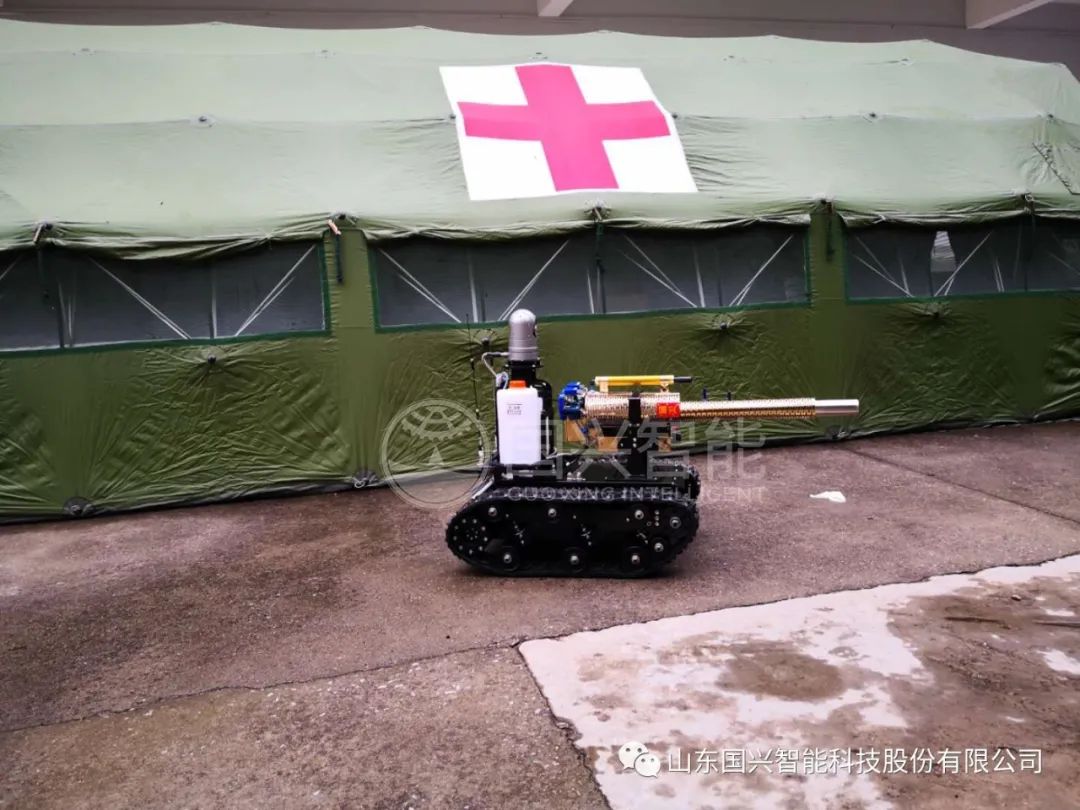 山东国兴智能科技股份有限公司在疫情期间,危急时刻,向军医院武汉前线捐赠消杀机器人,同时积极协助现场专家开展应急科研公关,有力的支持了武汉前线。