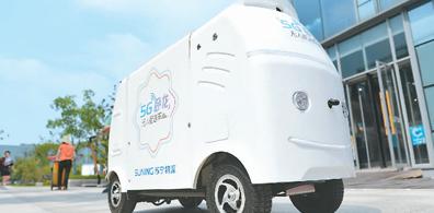 苏宁物流5G无人配送车在江苏南京浦口区实测路演。方东旭摄(人民图片)