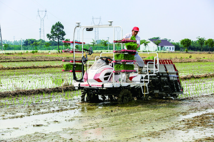 据悉,传统插秧机需两个人配合,一人驾驶机械,一人装秧苗,而无人驾驶插秧机上装有控制系统,传感器根据卫星定位,可自动调整方向盘。
