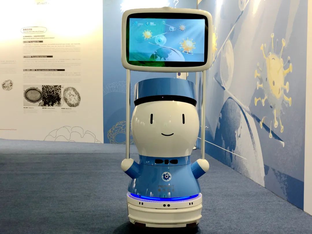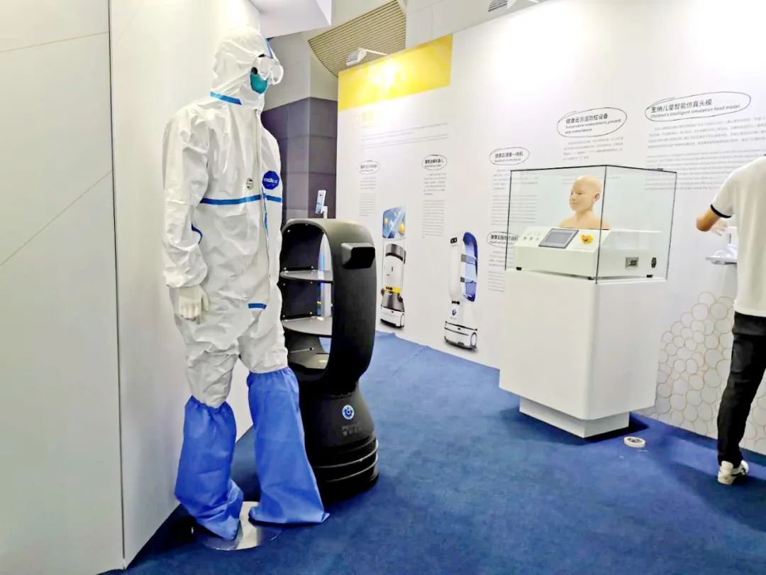 此外,“花生”的好搭档——疫情期间在隔离区及医院提供无接触配送,减少人员接触的送餐机器人,作为抗疫明星也在此次科技展品之列,备受领导、媒体及参展者喜爱,纷纷互动拍照。