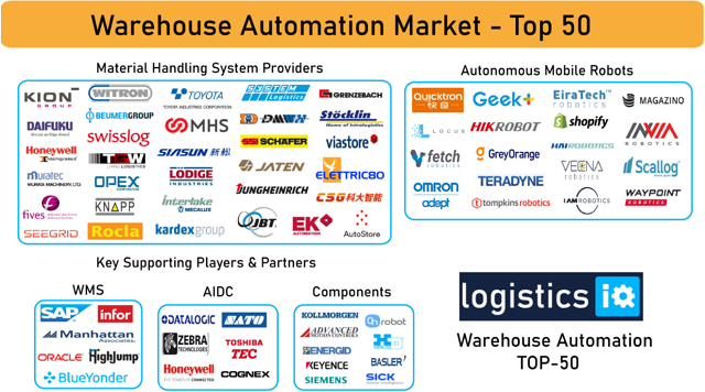 快仓在AMR市场的表现已经引起了行业研究机构的关注。近日,国际权威物流与供应链研究&咨询公司Logistics IQ发布最新版《2020年仓储自动化市场图谱》,并评选出全球TOP50仓储自动化公司,根据侧重领域分为四大类:物料搬运设备提供商或系统集成商、自主移动机器人(AMR)、自动识别和数据捕获(AIDC)、仓库管理系统(WMS),其中AMR板块的第一个位置是Quicktron快仓品牌!