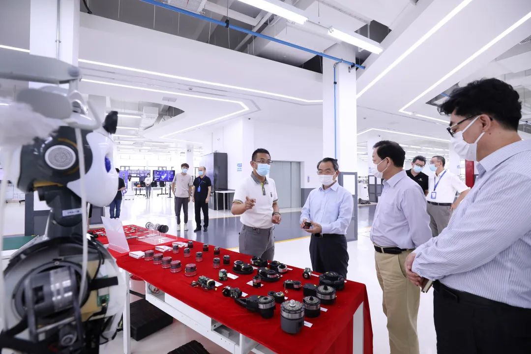 董云虎主席一行认真查看了达闼机器人的核心技术产品智能柔性关节SCA以及在此次科技抗疫中发挥了巨大作用的系列云端医疗服务机器人及在武昌方舱医院成功部署交付的智能方舱医院指挥系统。