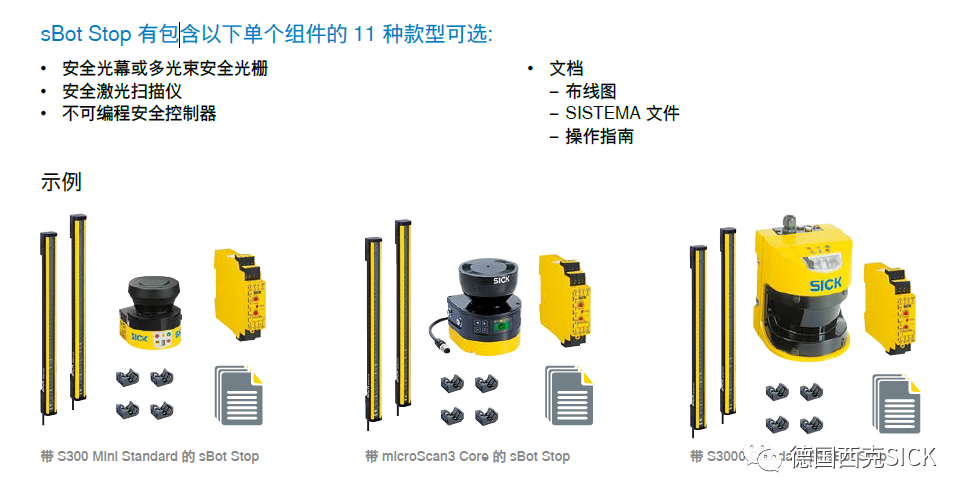 sBot Stop将用于进出控制的多光束安全光栅或安全光幕、用于存在性检测的安全激光扫描仪和安全控制器Flexi Classic的功能以智能方式结合。