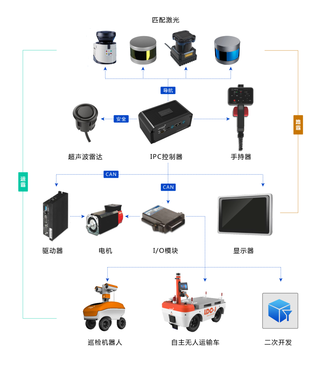 我们热忱期待与各类机器人整机生产厂商或机器人底盘生产商合作,提供具有世界先进水平的机器人导航定位系统,可以与各类型底盘(阿克曼轮、四轮差速、麦轮、四驱四转向轮、履带式底盘)完成定位导航模块配套。对于批量大的应用场景,可以接受定制化服务。