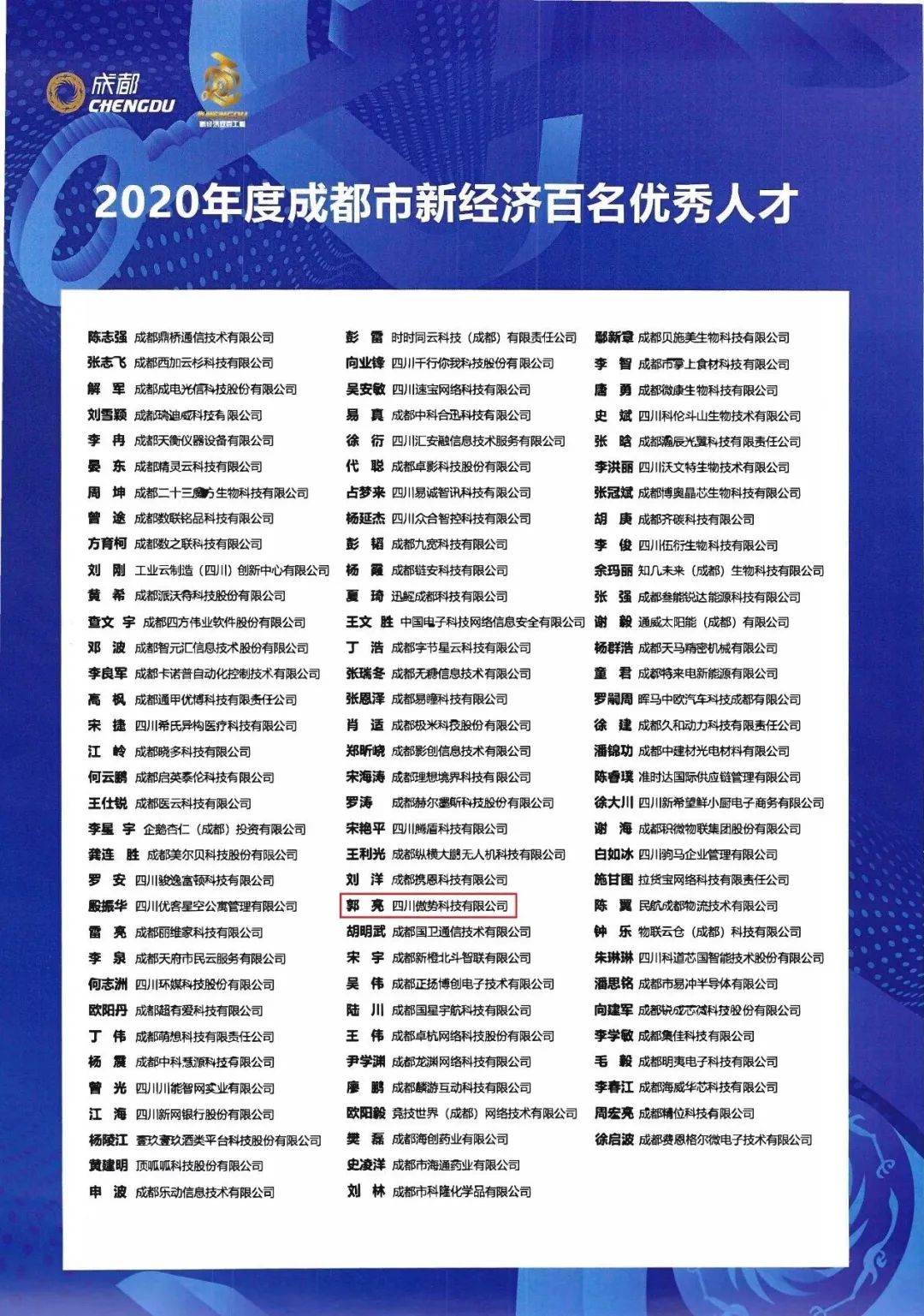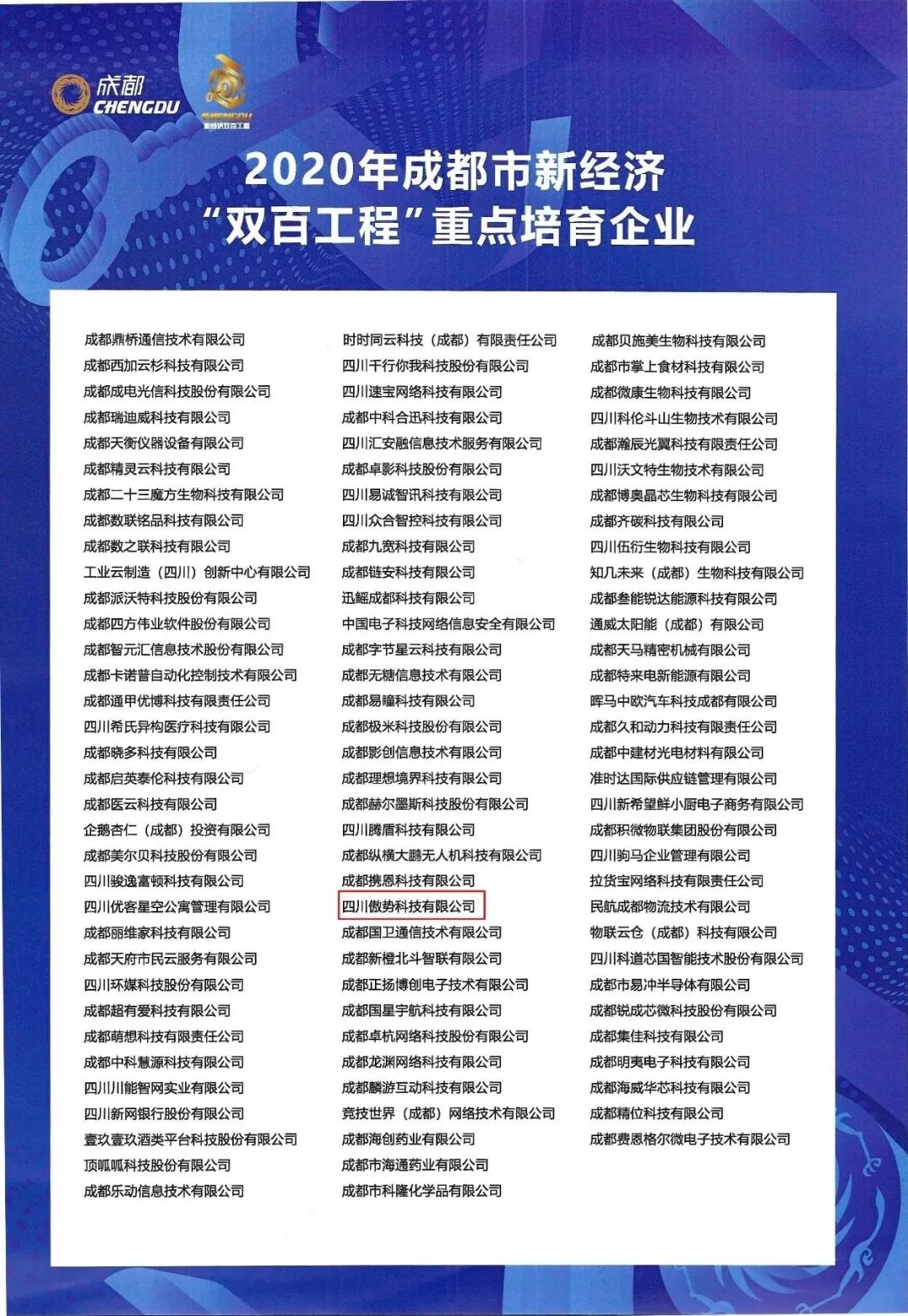 经过重重遴选,傲势的企业规模实力、经营能力、社会贡献、行业发展前景、创新能力、团队竞争力等因素获得了成都市政府高度认可,傲势荣耀入选2020年度成都市新经济“双百工程”重点培育企业、CEO郭亮博士入选2020年度成都市新经济“双百工程”优秀人才”。至今,傲势已是连续三年上榜“双百工程”重点培育企业,充分表明傲势在新经济领域所取得的创新突破与优异成绩。↓2018年,傲势首次荣获”双百工程“表彰