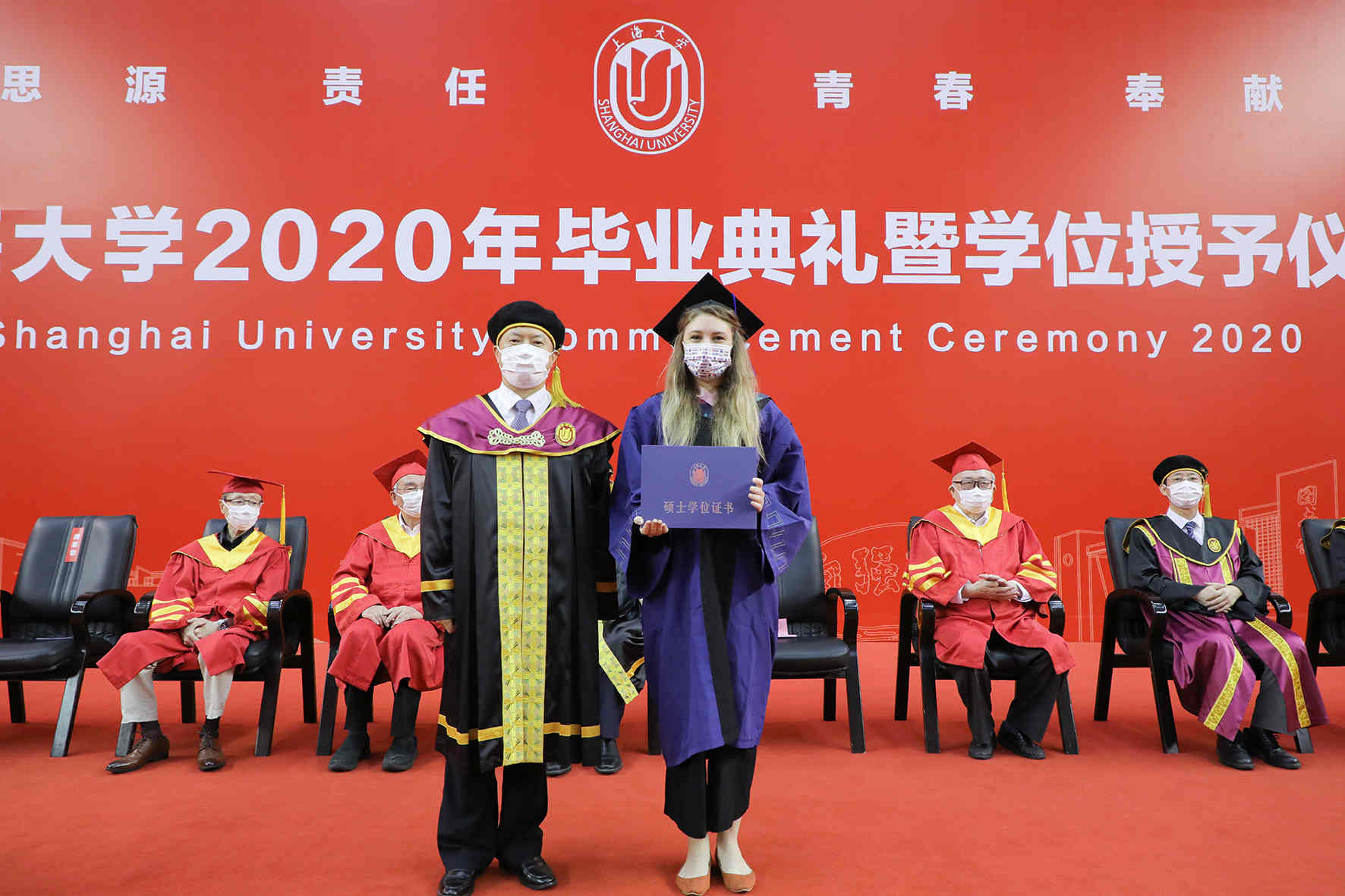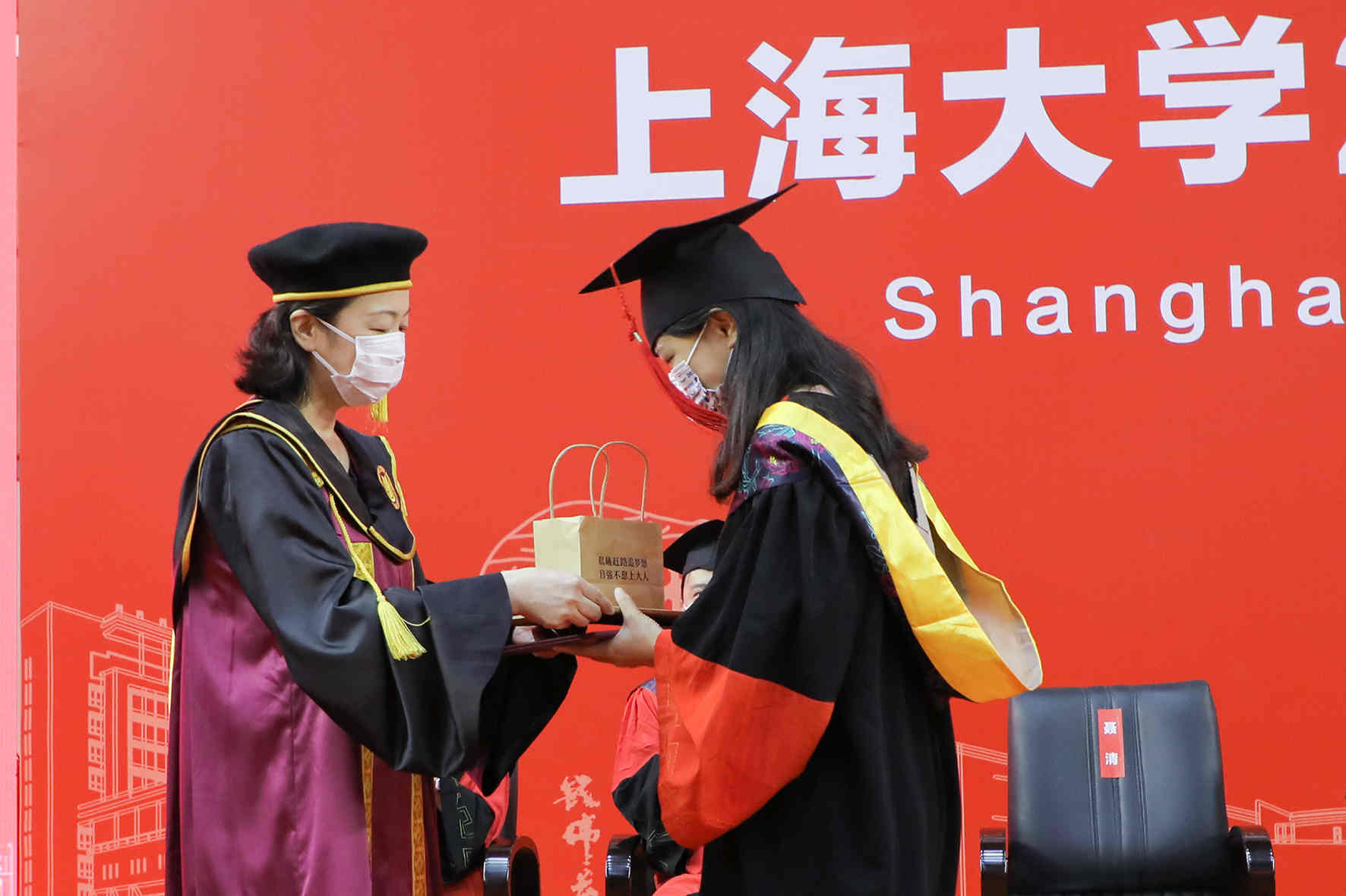 上海大学党委副书记、副校长龚思怡为毕业生代表赠送了毕业礼物。