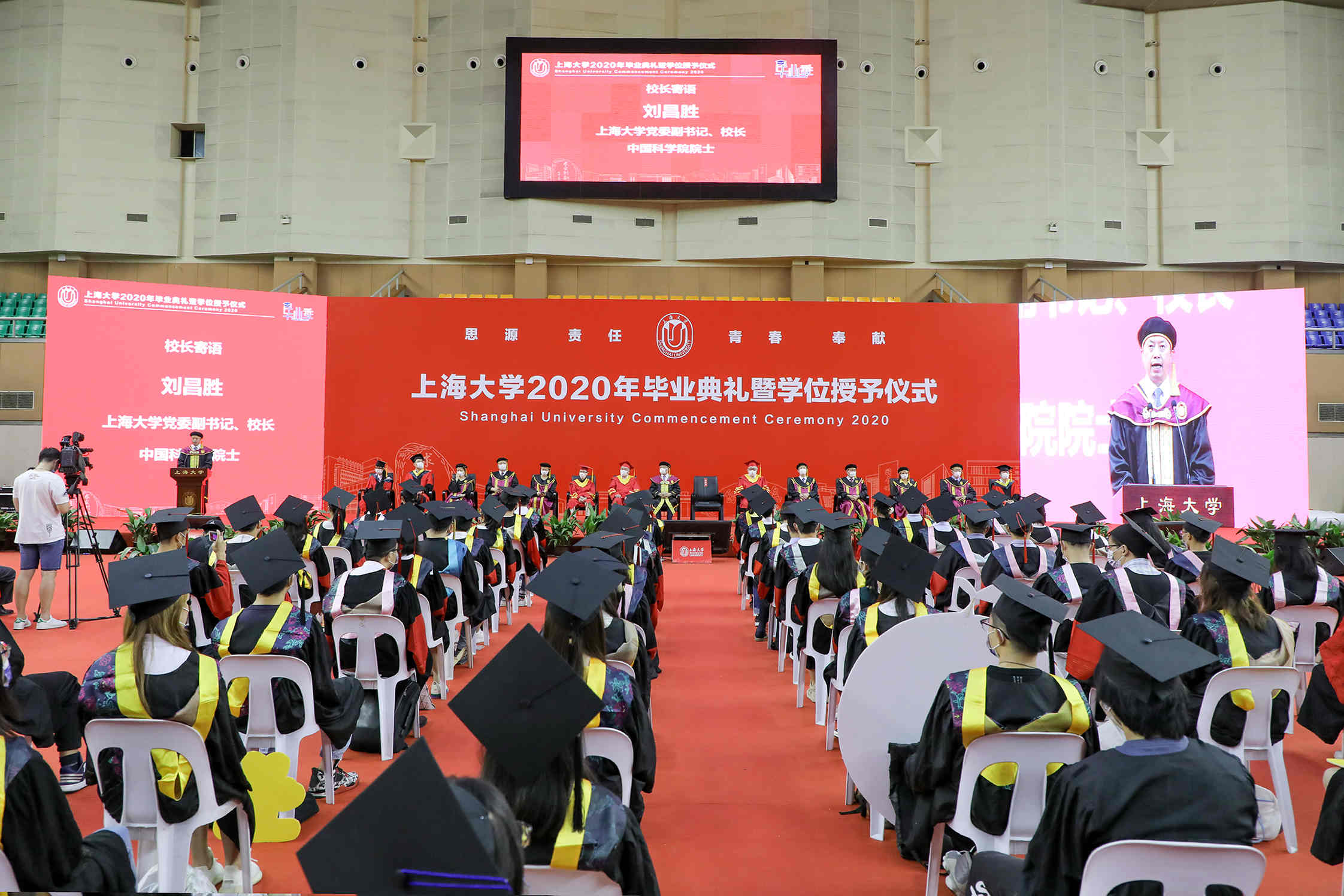 上海大学党委副书记、校长、中国科学院院士刘昌胜代表学校为毕业生代表拨穗并授予学位证书。