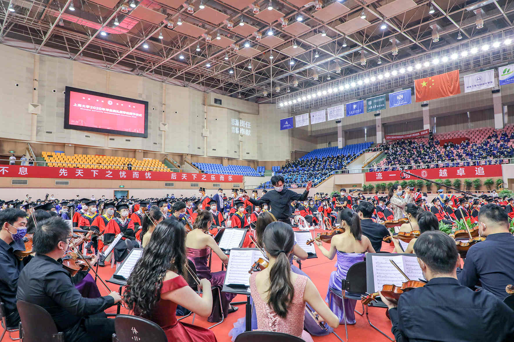 在互动环节,上海大学室内乐团演唱了学校送给毕业生的歌《“泮”与你相见》,表达母校对即将启程远行学子的不舍之情,盼望毕业生未来能常回母校看看、常回家看看。