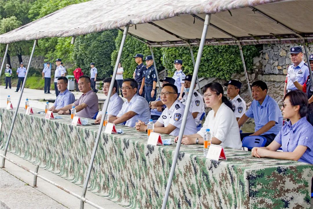 市委副书记、政法委书记、市反恐怖工作领导小组组长胡勇政,副市长、公安局长、市反恐怖工作领导小组副组长王郁辉,市中级人民法院院长王功荣,市人民检察院检察长梁莉,市委政法委常务副书记梅向阳,市司法局局长付玉书等领导现场指导观摩。