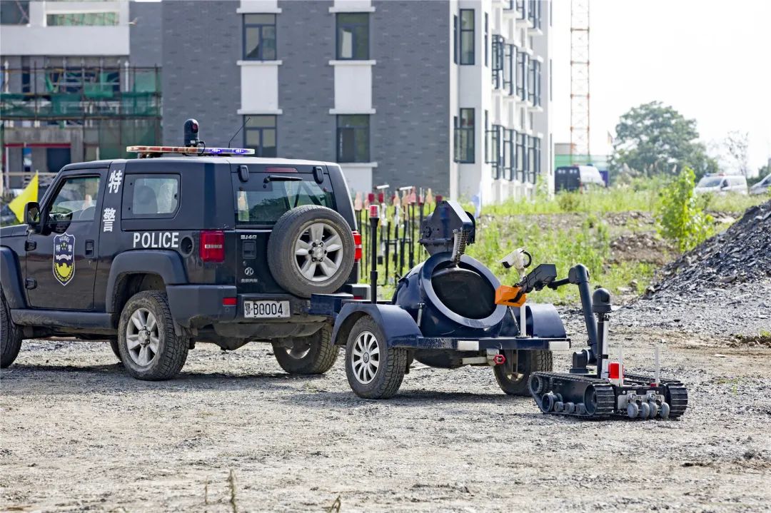 排爆组将“暴恐分子”携带的爆炸物转移至空旷地带销毁。