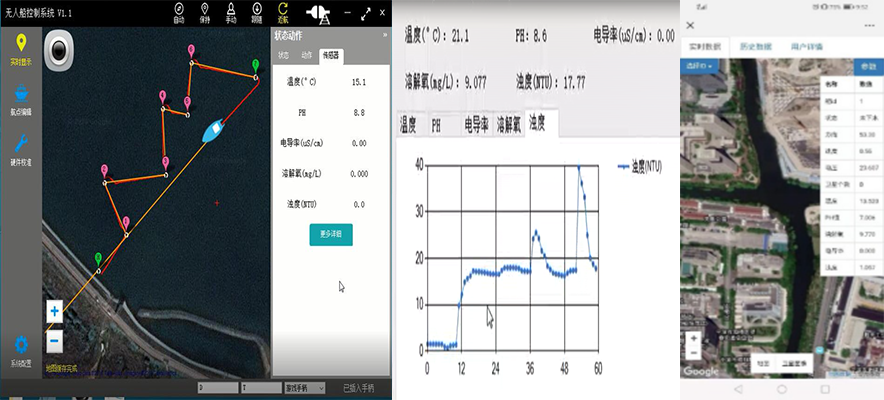 (路径规划航行/水质参数历史数据曲线/手机APP实时数据)