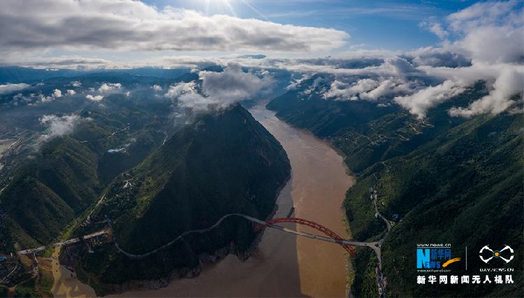 这是无人机7月3日拍摄的长江巫峡段,洪水从巫山长江大桥下流过。朱云平 摄