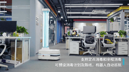 该机器人支持定点消毒和全程消毒,还可提前预设消毒计划,并远程编辑修改消毒路径,实现机器人自动巡航。