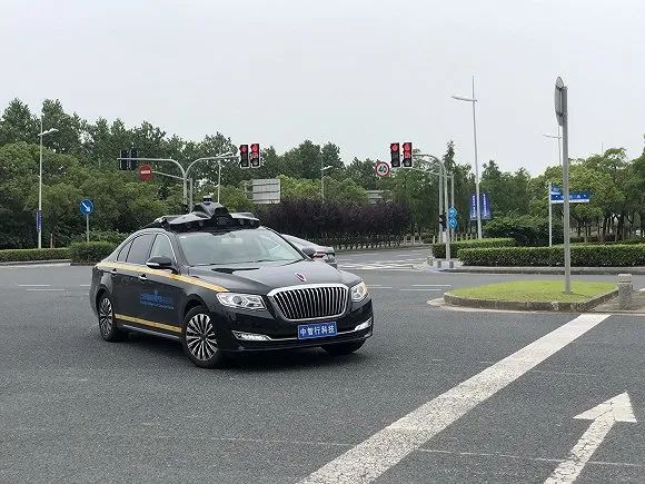 无人驾驶汽车在临港新片区测试在红路灯路口调头