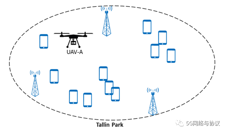 2、UAV A无人机在有效时间内进入塔林公园,请求网络资源完成某项任务。