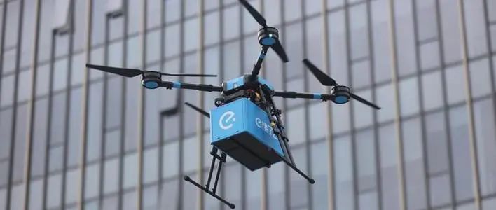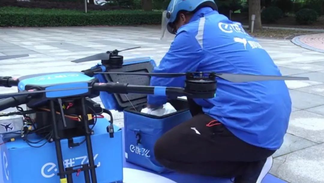 当时,饿了么在上海宣布开辟中国第一批无人机即时配送航线,标志着将送餐无人机正式投入商业运营。