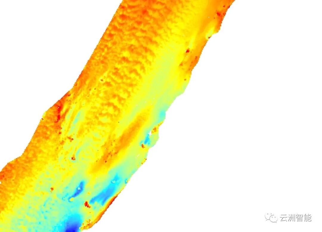 此次ME120全自动无人船平台测量作业采集的多波束数据质量良好,清晰地呈现了水下地形地貌,为勘察黄河水下地形提供了基础测量数据。此外,无人船还配置了高精度组合惯性导航系统,为多波束数据与无人机数据拼接完整提供了有力支撑,经分析处理,形成了黄河乾坤段的水上水下一体化测量结果。