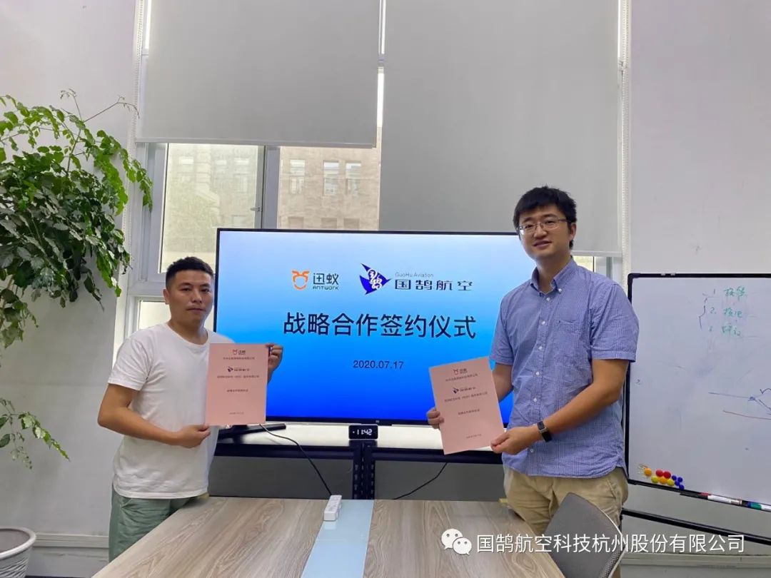 2020年7月17日,国鹄航空科技(杭州)股份有限公司(以下简称:国鹄航空)与杭州迅蚁网络科技有限公司(以下简称迅蚁)签订战略合作协议。