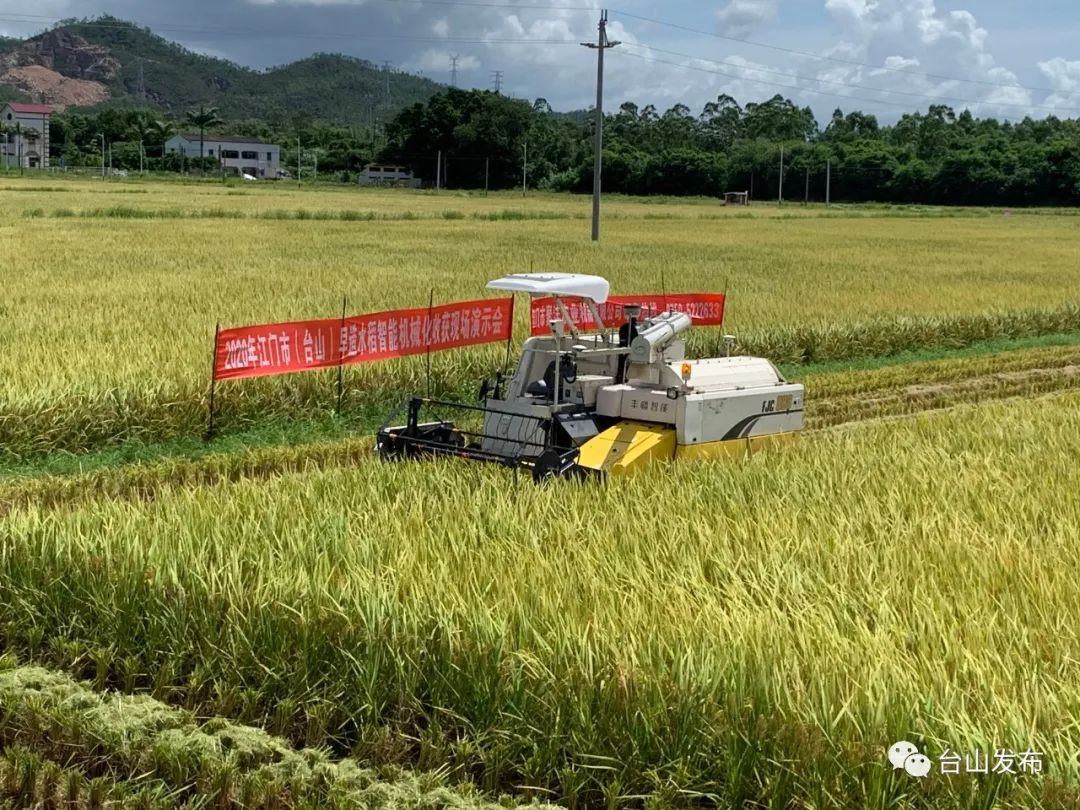 这是一场智能收割机水稻收割现场演示活动,也是粤西地区首次无人驾驶收割机下田作业。