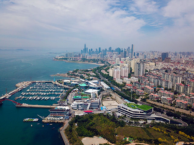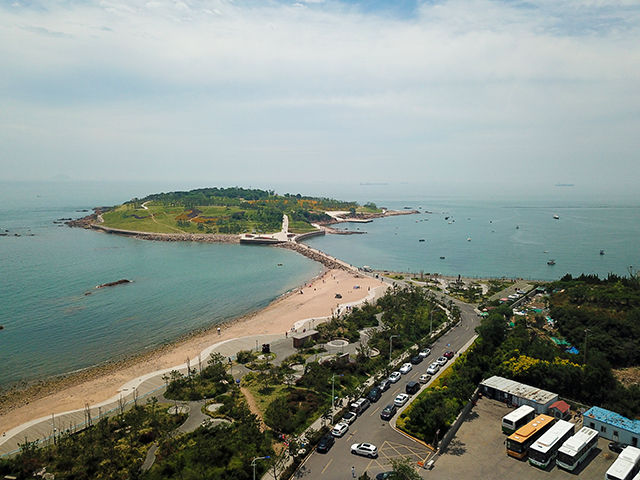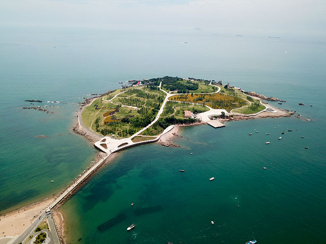 无人机视角下的小麦岛:青岛美丽的海岸线
