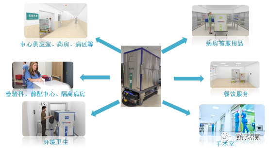 医用AGV机器人物流传输系统,具备自主导航、自主避障、自动乘梯、自动充电和视觉识别等核心技术,AGV机器人实现了院内多科室多部门的物资智能化配送和追溯管理。