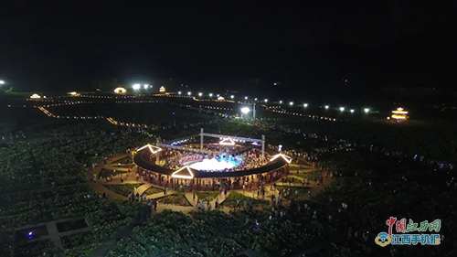 中国江西网/赣州头条客户端讯 见习记者谢京报道:7月19日晚,赣州市石城县第八届旅游文化节之荷塘音乐会在石城县大畲荷花园举行,现场无人机的精彩表演助力各具特色的歌舞演出,为此次荷塘音乐会划上完美句号。
