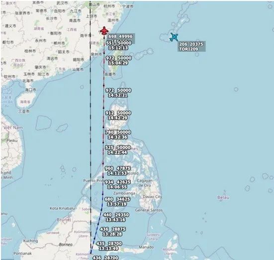 根据「东京雷达」 指出,这个美国所属、标号AE64C6的飞行物体,7月15日下午先是掠过菲律宾西部海域上空,穿过台湾海峡后「笔直的进入中国领空」,下午2点14分时从福建省进入后,一路往浙江省北方而去,然而飞行物体的飞行高度近5万英尺(约1万5240公尺),飞行速度达1000节(约每小时1852公里),怀疑是美军的高空侦查机或无人机。
