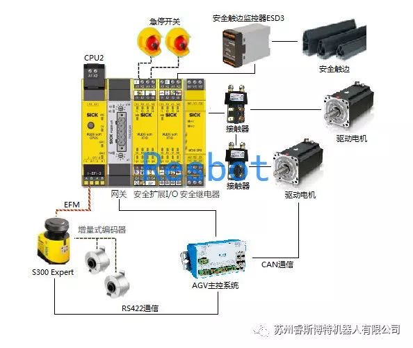 在AGV模型设计的时候,常见的安全防护功能有急停按钮,安全扫描仪,安全触边等等,虽然这些在进行AGV安全防护配置时比较容易会想到。但是在实际做出来的系统,还是不能满足安全标准的要求。以下有一个简单的提示,以SICK的系统为例,做一个简单的介绍。