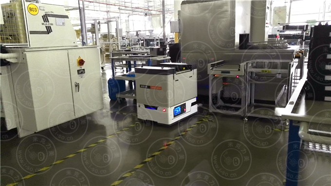 从上述的AGV搬运流程可以看出,米克力美AGV小车能是代替人执行各种搬运的。因为米克力美AGV小车能轻松运载车间物料,把货物装载在背负式AGV小车上,可实现货物的轻松搬运,并且多台AGV小车配合使用可组成装配线,代替流水线,形成柔性生产系统。