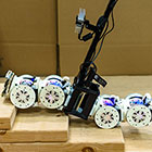 照片:佐治亚理工学院研究人员演示了一种移动机器人可以交换自己的“鞋子”以适应不同的地形。