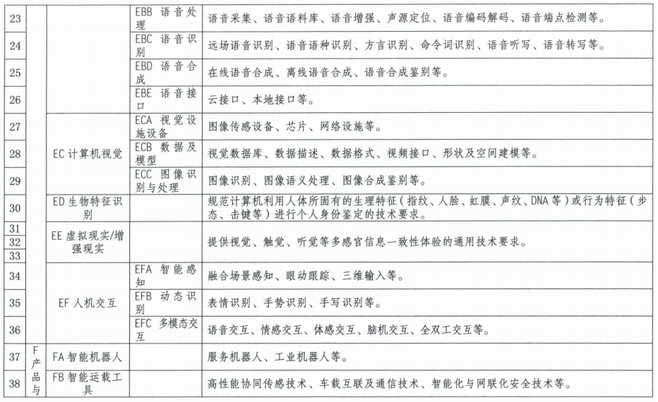 3.计算机视觉标准。规定计算机及视觉感知设备对目标进行检测、识别、跟踪的技术要求,解决图片或视频采集、处理、识别、理解和反馈等各环节的一致性和互联互通问题。计算机视觉标准包括视觉设施设备、数据及模型、图像识别与处理三个部分。