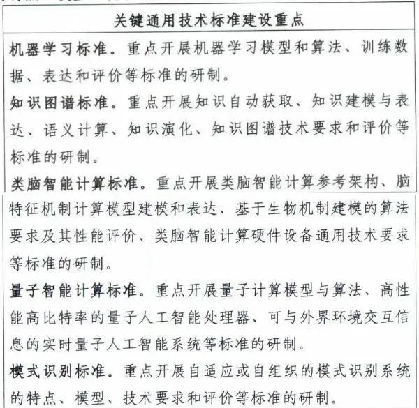 关键通用技术标准主要包括机器学习、知识图谱、类脑智能计算、量子智能计算、模式识别等部分,如图6所示。