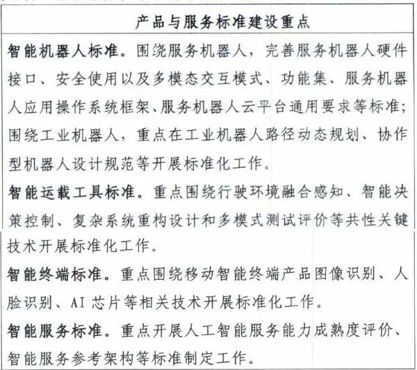 产品与服务标准包括智能机器人、智能运载工具、智能终端、智能服务等部分,如图8所示。