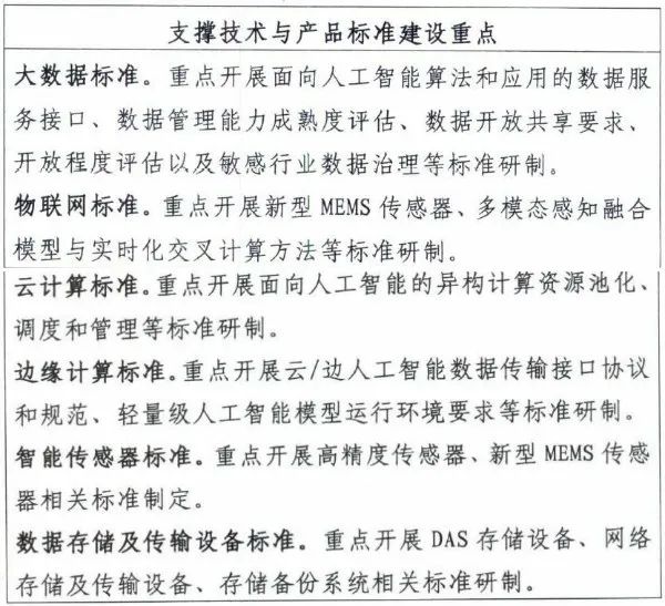 1.大数据标准。规范人工智能研发及应用等过程涉及到的数据存储、处理、分析等大数据相关支撑技术要素,包括大数据系统产品、数据共享开放、数据管理机制、数据治理等标准。