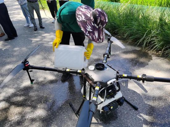 植保无人机是指用于农林植物保护作业的无人驾驶飞机,该型无人飞机由飞行平台、导航飞控、喷洒机构三部分组成,通过地面遥控或导航飞控,来实现喷洒药剂作业。主要防治对象为稻水象甲、二化螟和立枯病,所用药剂为生物农药和高效低毒低残留农药。