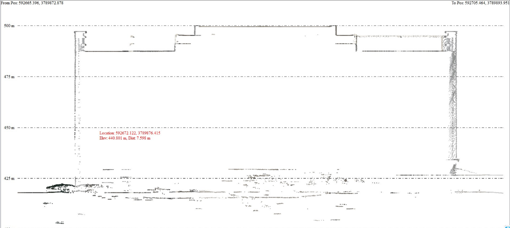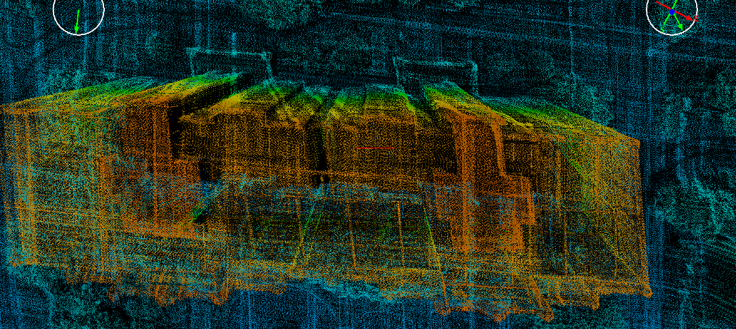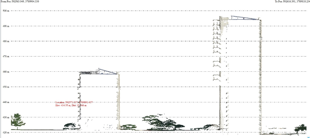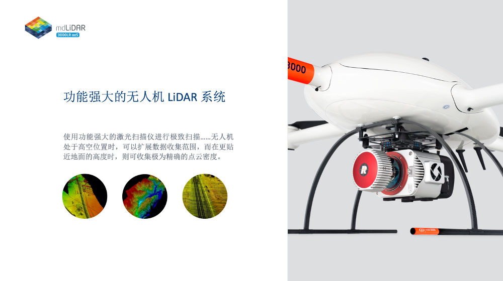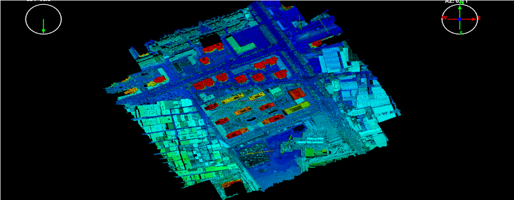 该案例中,Microdrones 使用了mdLiDAR3000LR 无人机集成系统,在演示区域飞行1 个架次,共扫描0.4km²,飞行高度180 米,使用交叉飞行的方式,采集了 GNSS 数据,机载激光雷达原始数据,惯导数据。经过处理得到了该区域的数字三维点云,点云密度为每平方米190 个点。