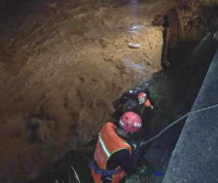 两名消防救援人员做好安全措施后迅速下滑至岸边,岸上的救援人员将安全绳固定好后抛给岸边的救援人员,尝试使用救生抛投器营救被困者,但因被困者所处位置已成为一处不足1平方米的水中孤岛,救生抛投器很难精准投放。救援人员与公安、应急人员紧急调用一架大型无人机,通过无人机精准向被困者投送救生衣、安全绳、头盔等救生装备,并通过电话将救援方案告知被困者。岸上人员同时将一端安全绳固定在消防车上,最终救援人员合力将被困者拉到岸边,并转移到安全地带。