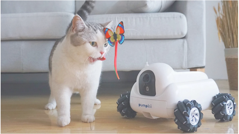 此外,用户还可以通过远程打开Pumpkii的零食分发器来给动物零食,或者使用可拆卸的激光指示器和配备羽毛的“ Teaer Tool”与它们一起玩。。